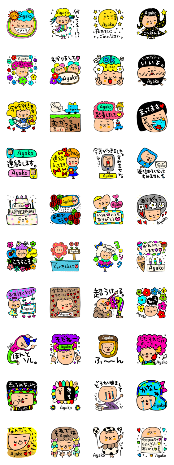 Ayaka(あやか)専用名前のスタンプ。よく使う言葉でセットにしましたー!かわいいものからシュールなものまで。