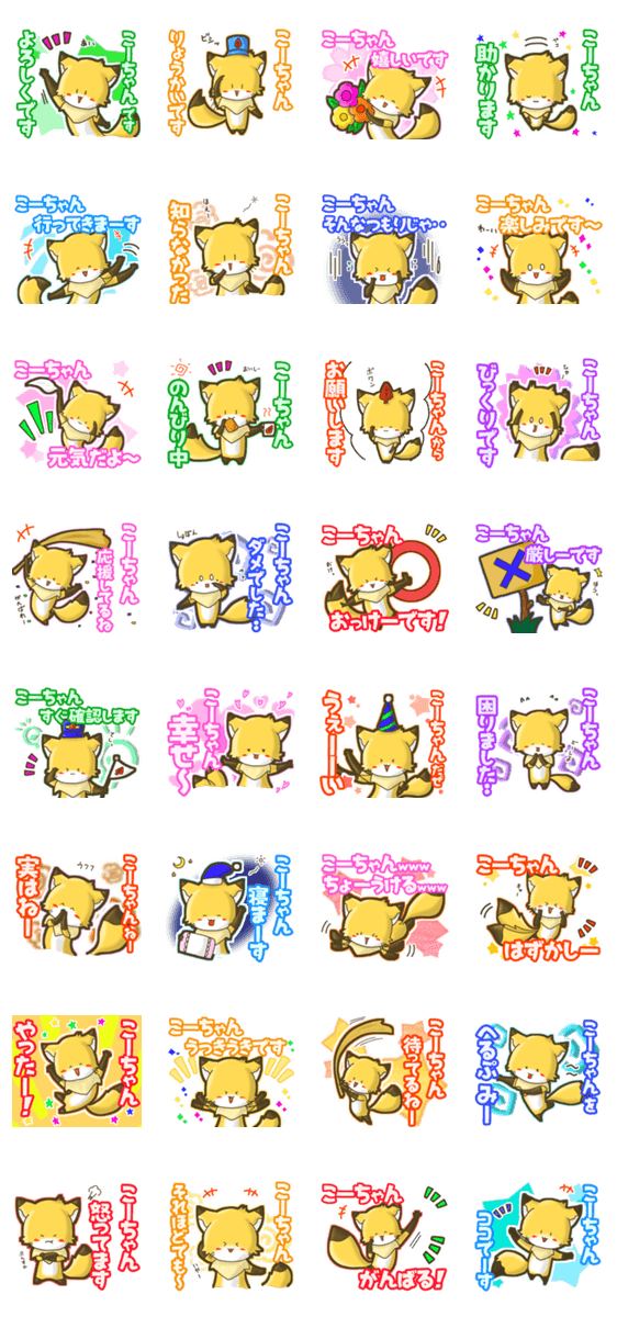 ゆっけ。が贈る【こーちゃん】用名前スタンプ02です。友達や恋人とのやりとり、グループの連絡にぜひ。《ゆっけ。のアニぱ!》02「おちゃめなきつねっこ」のスタンプです。