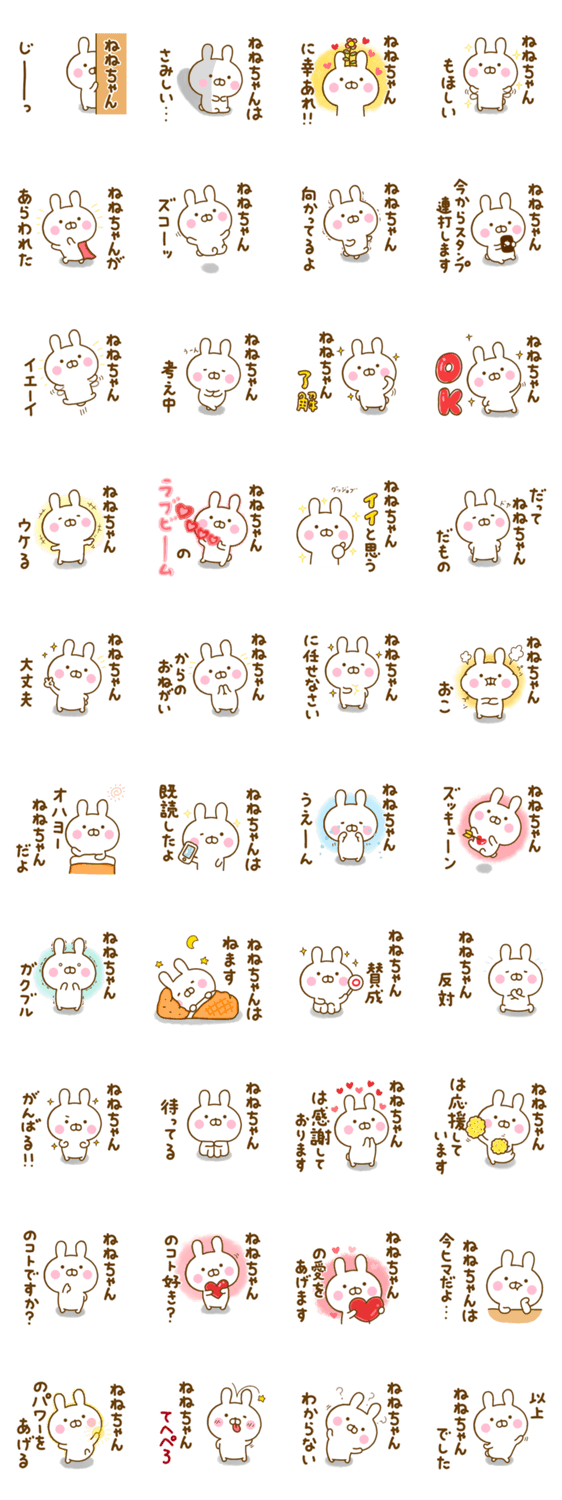 ゆる~く、かわいい、うさぎ(うさひな)の☆ねねちゃん☆が使う名前スタンプです♪