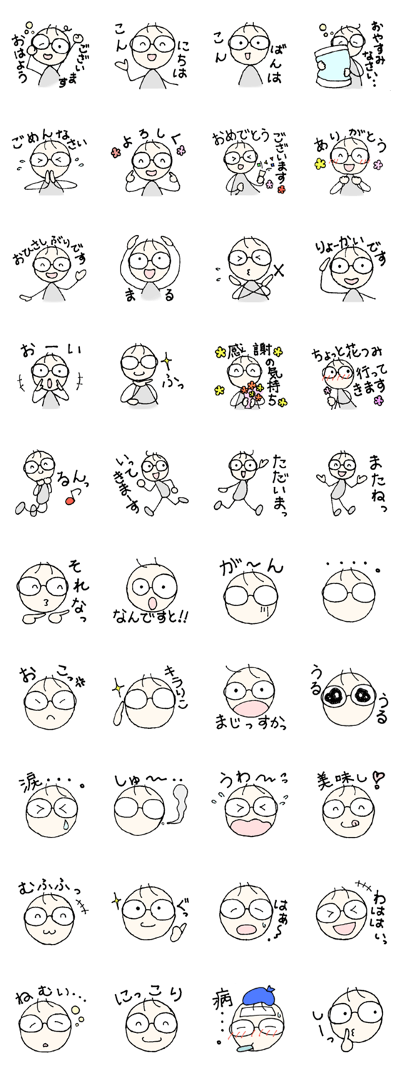 めがねをかけてる『まるまちゃん』のスタンプです。