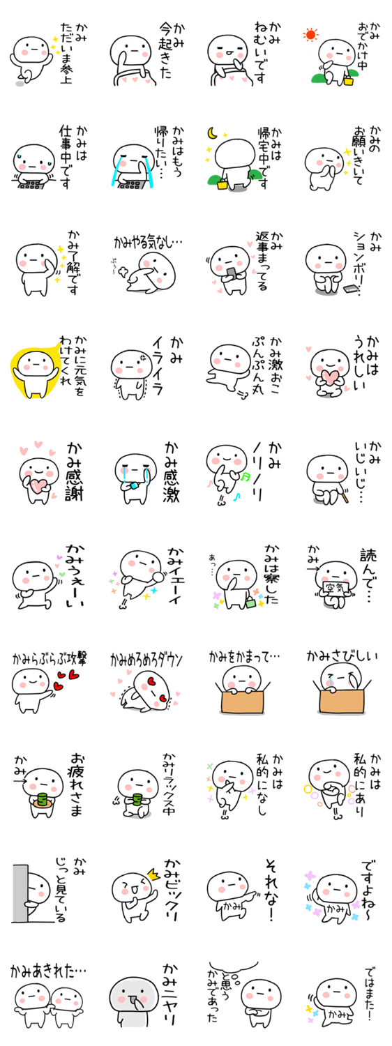 日常で無難に使える「かみ」名前&あだ名スタンプです。しろまるキャラです。