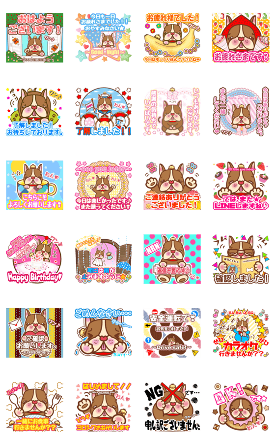新しい職場の先輩や同僚、新しく出会ったママ友などに★ 一日一日を素敵に過ごすおまじないスタンプです☆ほっこりワンコの癒し系スタンプ【敬語Ver.】!!
