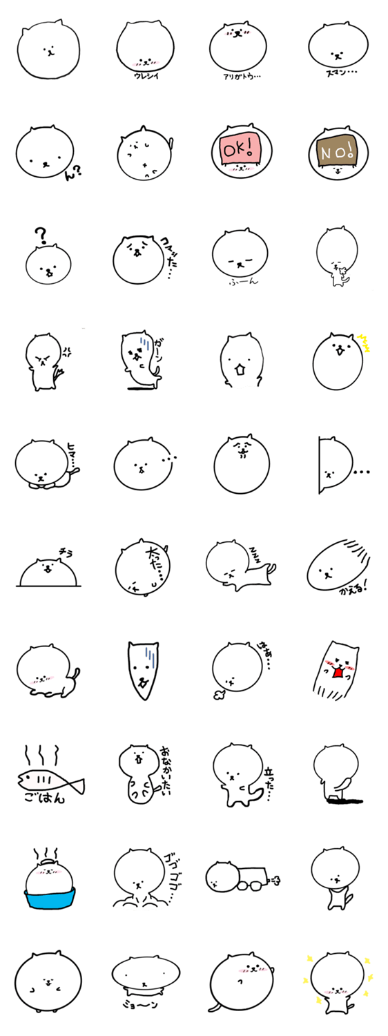 顔がでかくて、真っ白のかわいいネコのスタンプです。
