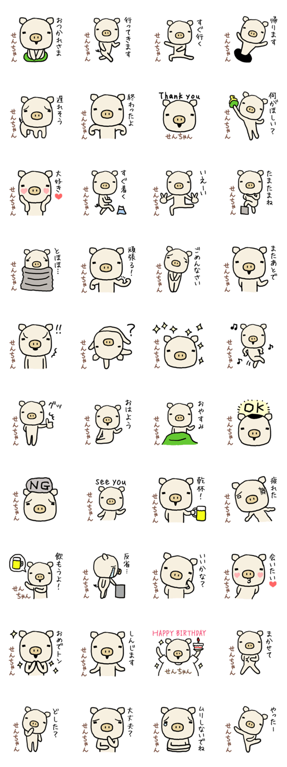 「せん」ちゃん専用スタンプ(ぶた) -LINEスタンプマニア