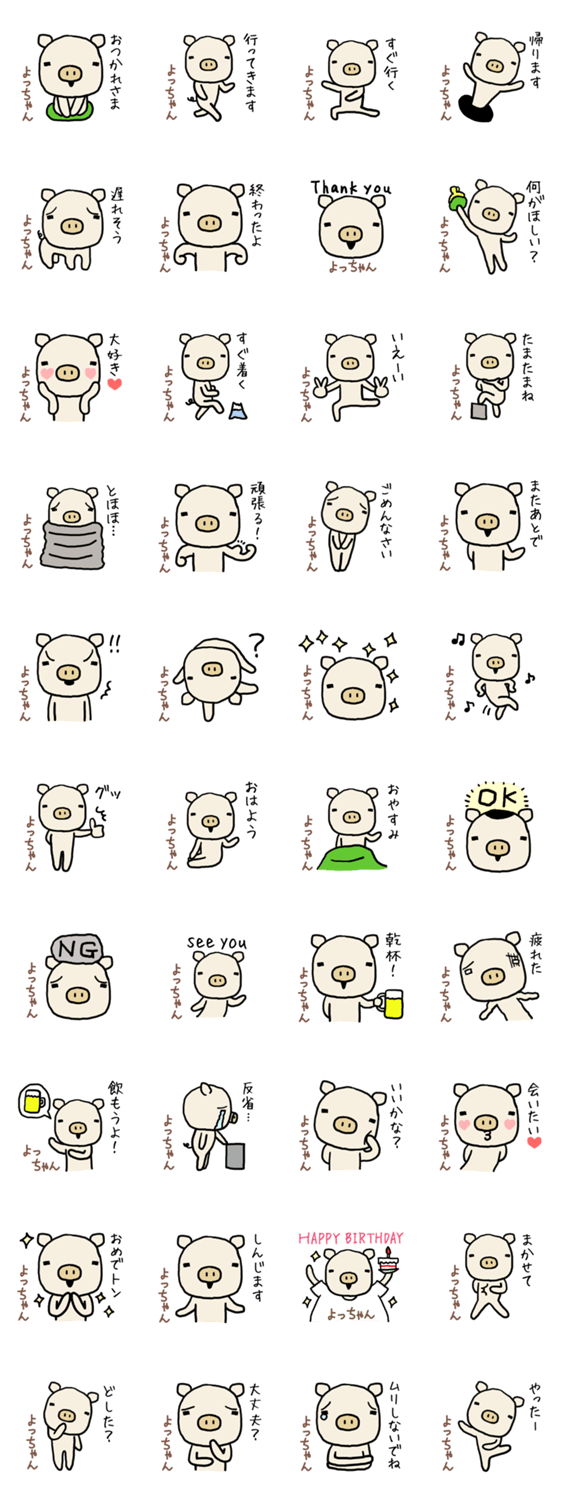 「よっ」ちゃん専用スタンプ(ぶた) -LINEスタンプマニア