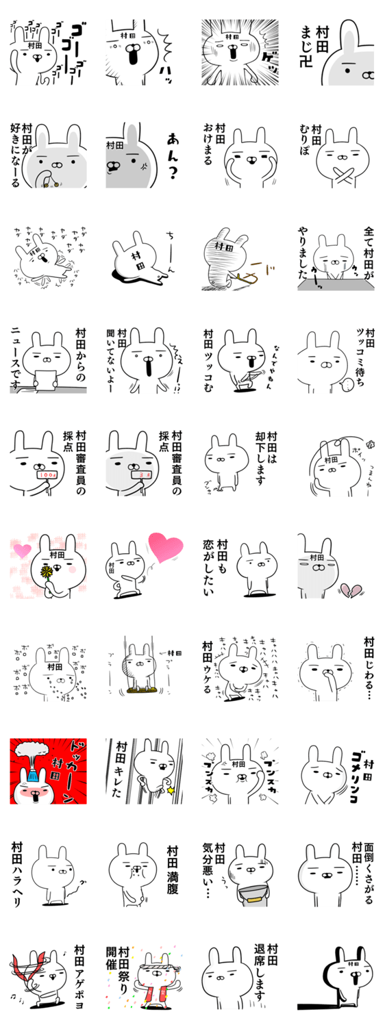 日本全国に数ある苗字の中,村田さんの人気うさぎスタンプがまた登場。便利で面白く,名字がむらた・むらださんに使える!家族や友達から愛するムラタさんへのプレゼントに♡