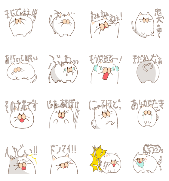 白ネコのあいうえお・・・ってるスタンプ