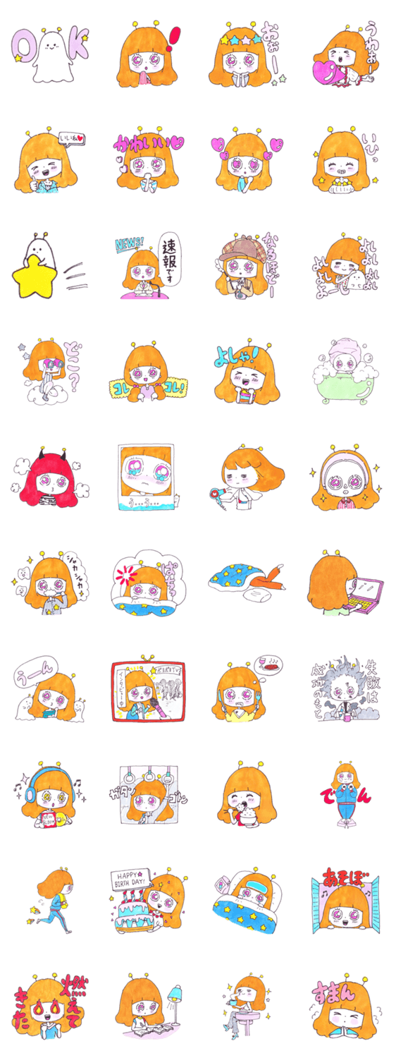 人間にそっくりなポヨポヨ星人の女の子のスタンプ3♡