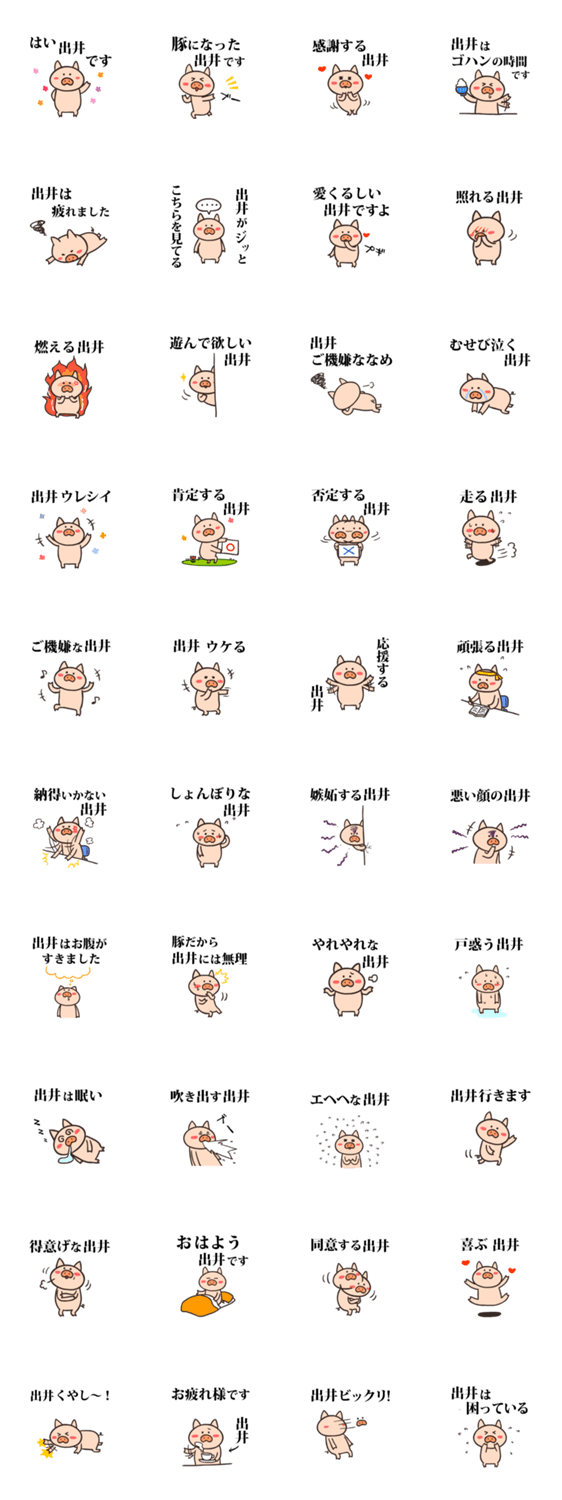 ぶたになりました。その最高に愛くるしいかわいい仕草で、日常的に使えるスタンプです。苗字が入った名前スタンプなので毎日使えるんです。ブー