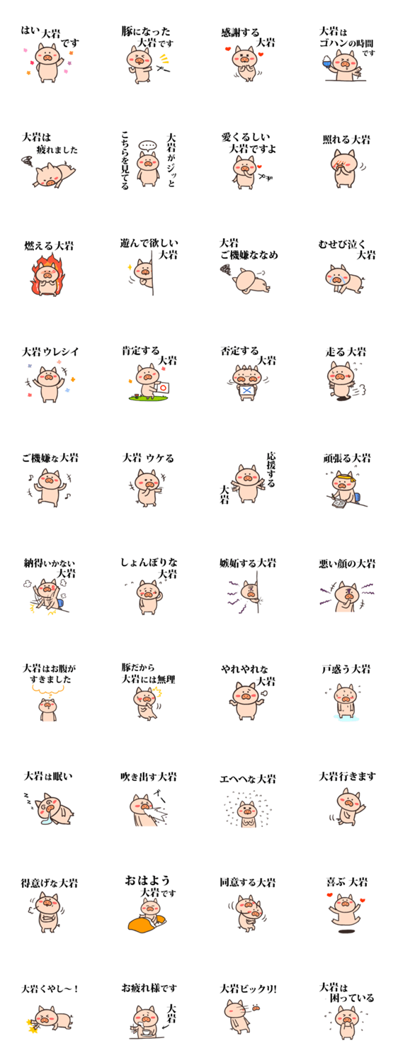ぶたになりました。その最高に愛くるしいかわいい仕草で、日常的に使えるスタンプです。苗字が入った名前スタンプなので毎日使えるんです。ブー
