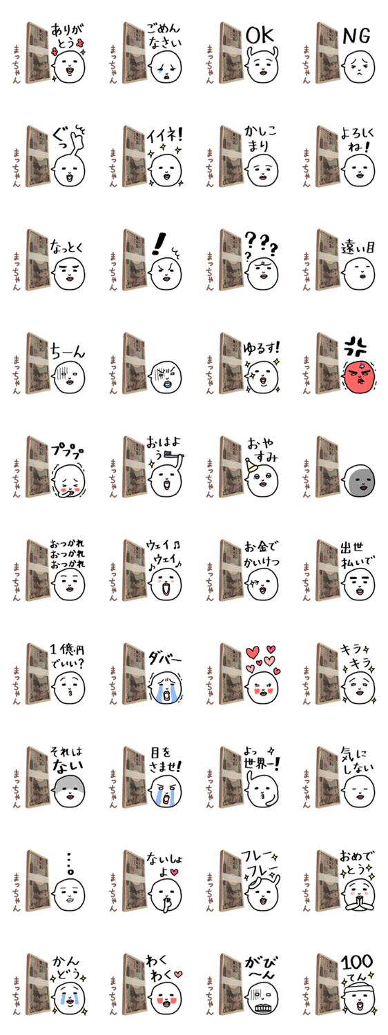 「まっ」ちゃんのためのスタンプです。まつ、まつき、まつだ、まつい、まつもと、まつぬま、まつや、まつざき、まつさき、まつざか…全てのまっちゃんちゃんへ。