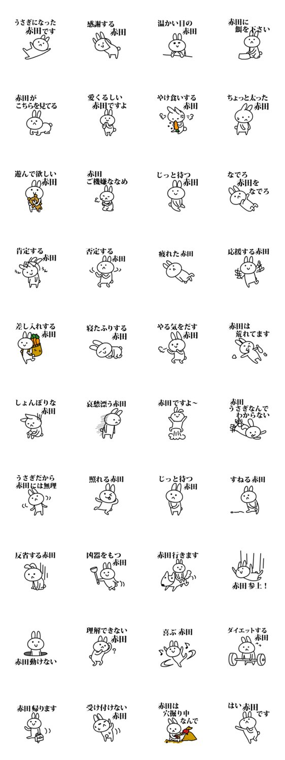 うさぎになりました。その最高に愛くるしいかわいい仕草で、日常的に使えるスタンプです。苗字が入った名前スタンプなので毎日使えるんです。ぴょん