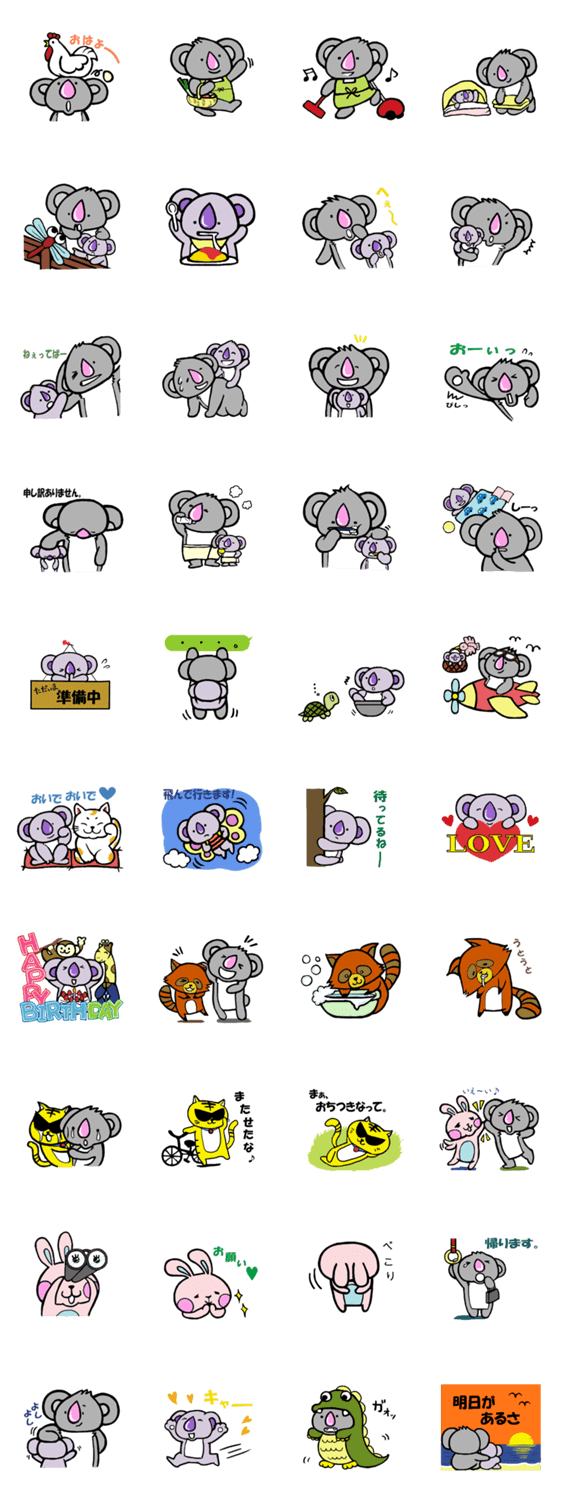 ピンクのお鼻のコアラ、コーちゃんが仲間たちを連れてやってきたよ!!家事、育児にも使えるスタンプがいっぱい!コーちゃんのお友達もよろしくね♪