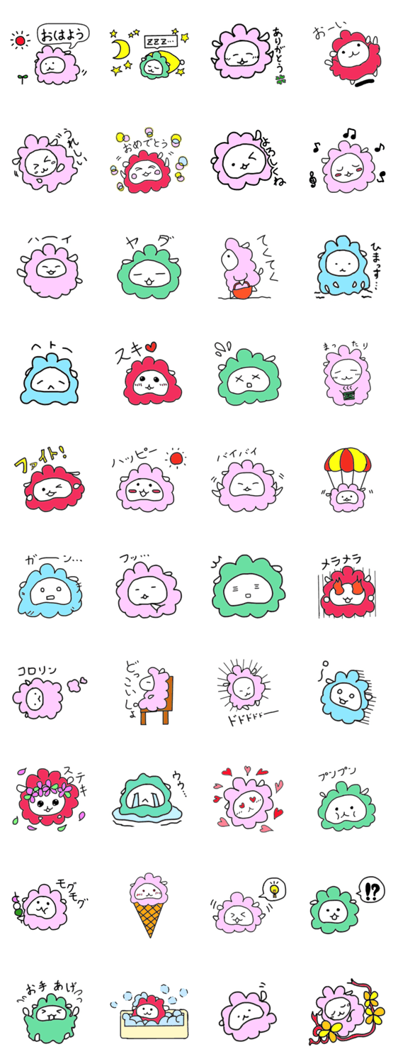 まるくてだんごのようなゆるーいひつじです。お茶目で無邪気に様々な感情を伝えます。