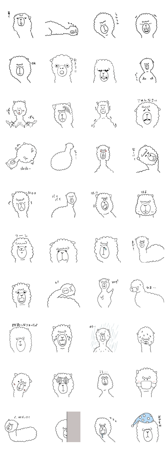 自由気ままなアルパカのスタンプです。なんだか癖になると思うんで使ってみてください。