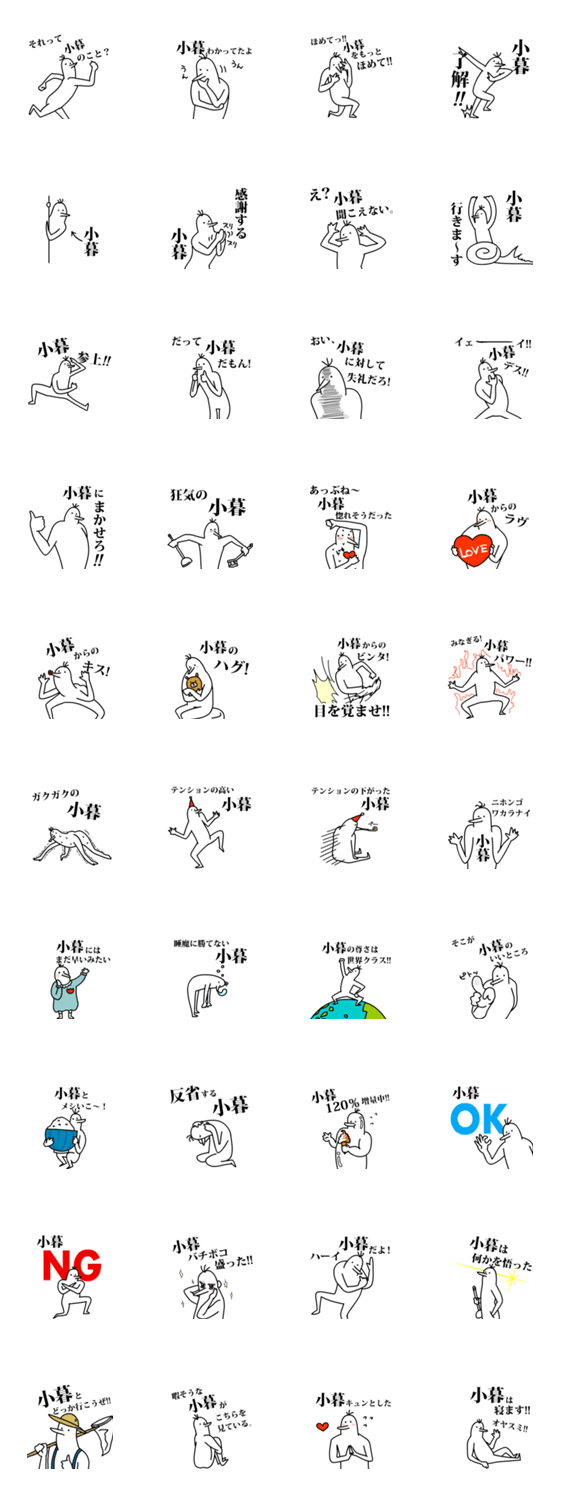 ちょっとスラッとした、白い鳥の名前スタンプ! 自分の名前でメッセージを送ってね。