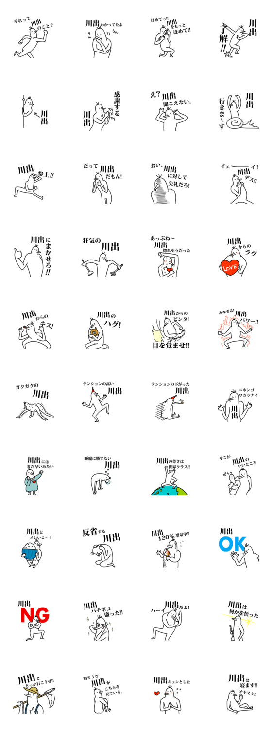 ちょっとスラッとした、白い鳥の名前スタンプ! 自分の名前でメッセージを送ってね。