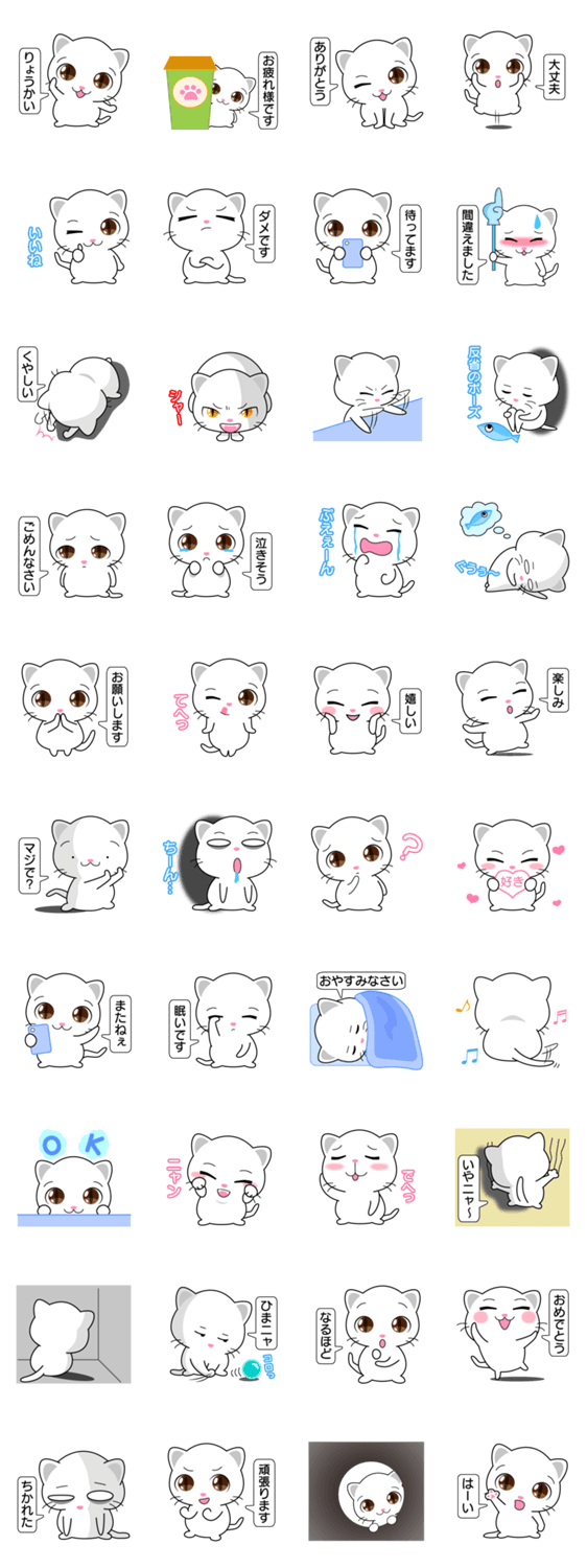 日常会話で楽しく使えるスタンプです。可愛い白ネコちゃんに会話を盛り上げて貰いましょう!