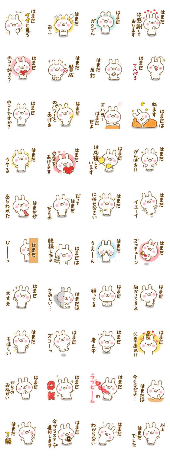 ゆる~く、かわいい、うさぎ(うさひな)の☆はまだ☆浜田、濱田が使う名前スタンプです♪
