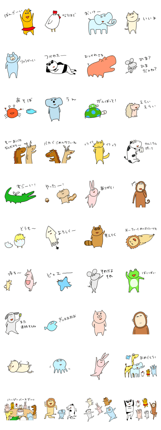 スタンプ説明 ちょっとへんなどうぶつがいっぱいだよ