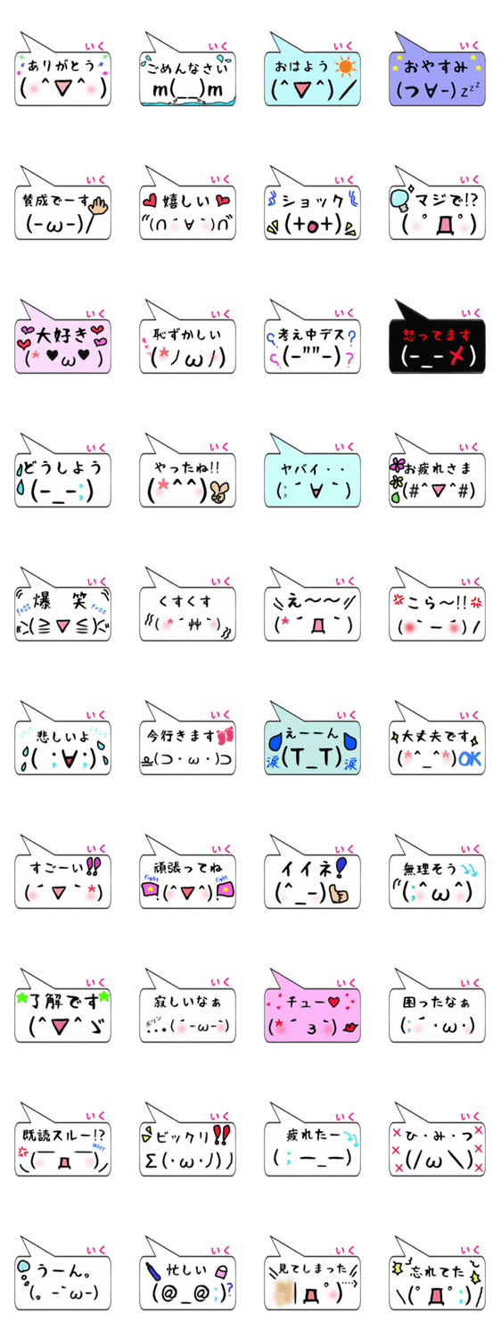 | スタンプ説明 | 名入り顔文字が日常会話を盛り上げてくれる【いくさん専用顔文字君スタンプ】 |