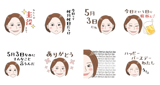 スタンプ説明 5月3日生まれの人をお祝いするスタンプです。