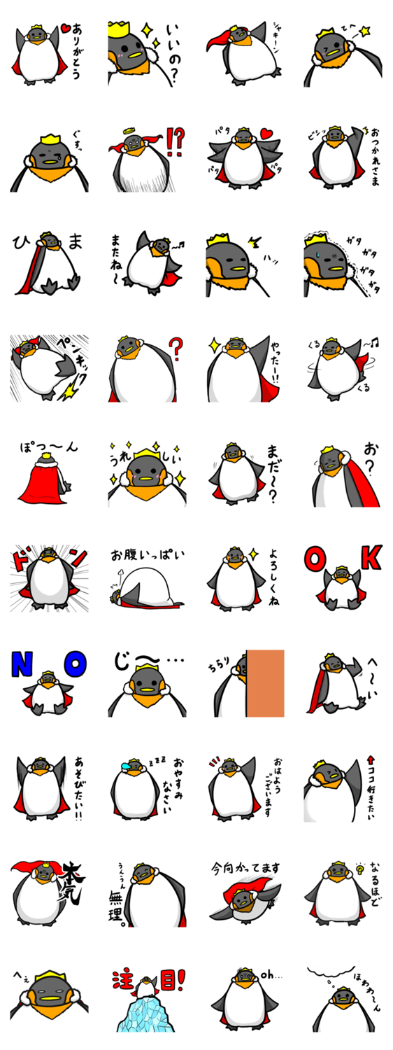 王様の格好をしたオウサマペンギン。可愛く、ときにカッコよくあなたの気持ちを表現してくれます!