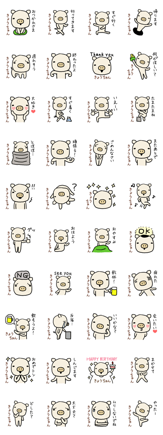 「きょう」ちゃん専用スタンプ(ぶた) -LINEスタンプマニア