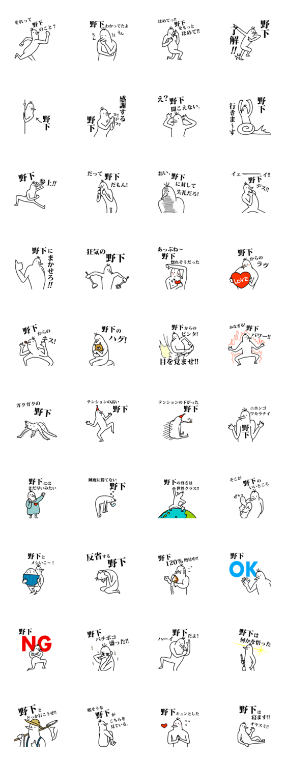 ちょっとスラッとした、白い鳥の名前スタンプ! 自分の名前でメッセージを送ってね。