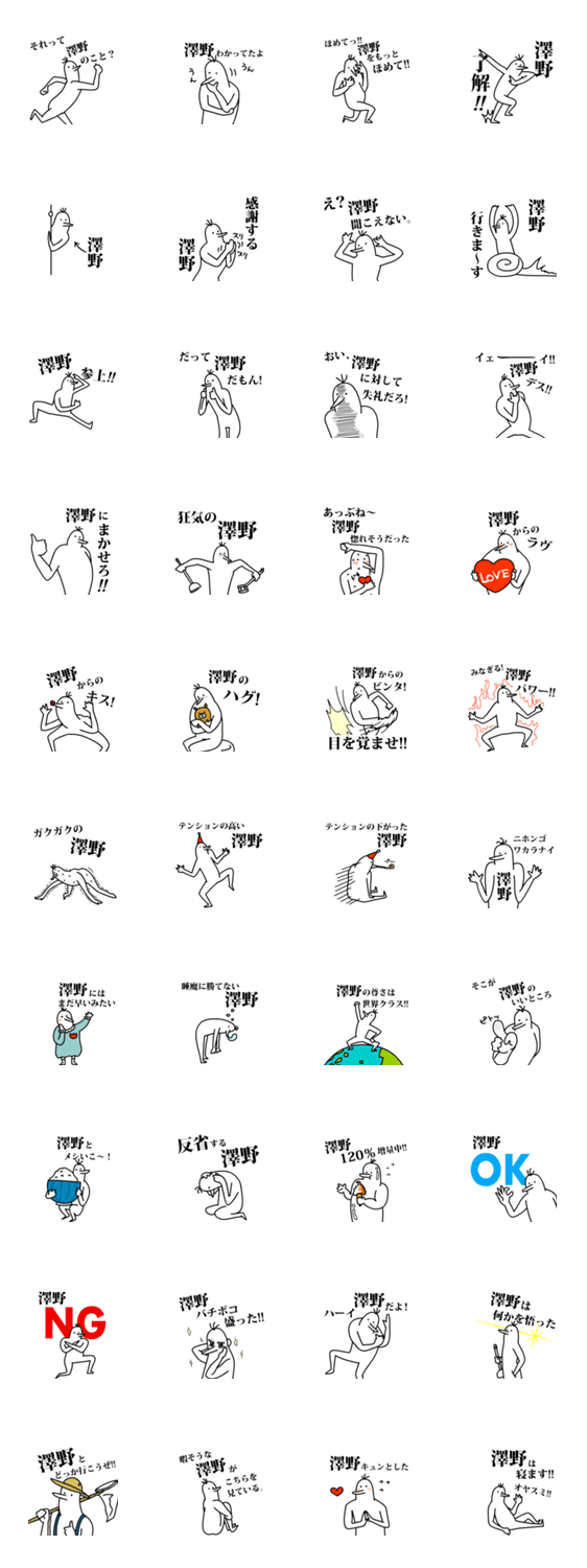 ちょっとスラッとした、白い鳥の名前スタンプ! 自分の名前でメッセージを送ってね。
