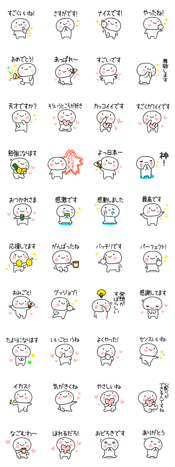 日常で毎日使える「褒め言葉」をしゃべる「ほめる」くんです。褒めたい人にお使いください。しろくてまるいキャラクターです。