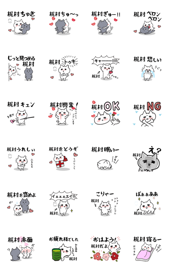 「梶村」のラブラブ猫スタンプ -LINEスタンプマニア