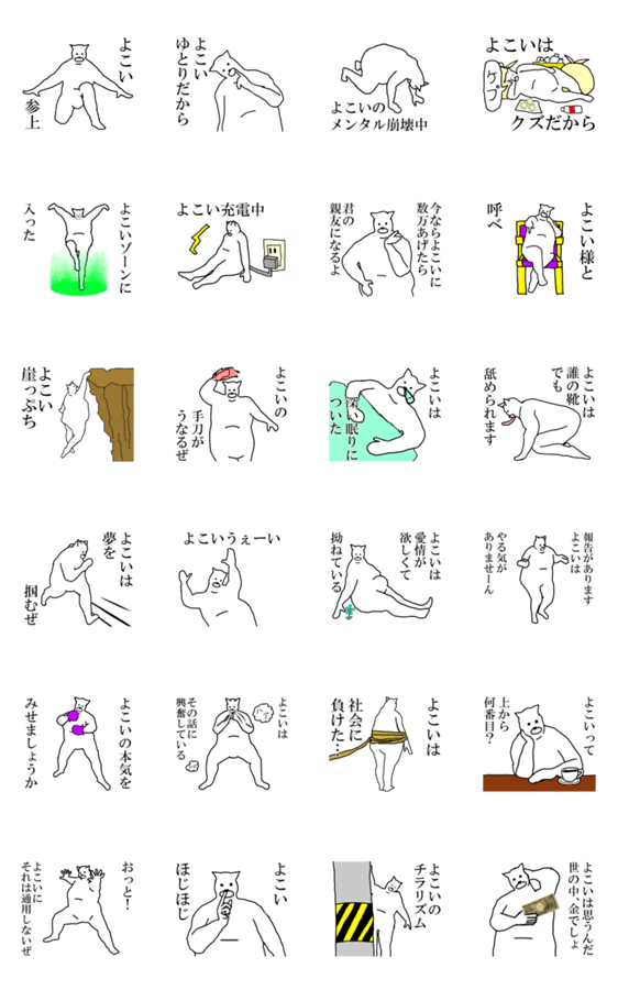 自分の名前に、【よこい】が付く人専用のアニメーションスタンプです。よこい、ヨコイ、横井、横居等々。