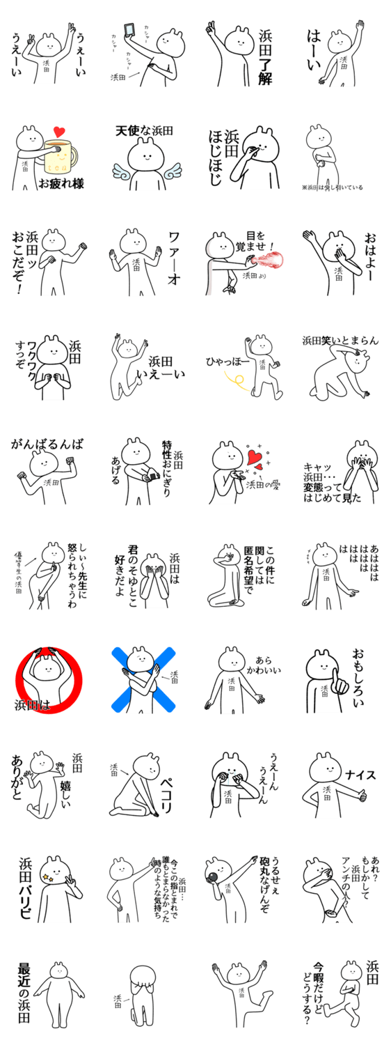 「浜田」が使う自由すぎるシュールで面白い名前スタンプです。はまだ/ハマダ/はまた/はまちゃん/苗字/あだ名/等/専用/浜田さんへのプレゼントにもどうぞ♪