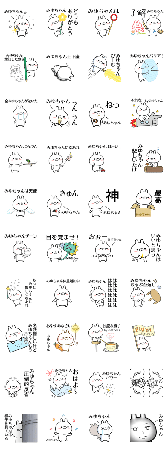 「みゆちゃん」が使う無難でゆるい名前スタンプです。美優/美結/美由/美裕/美憂/美友/みゆき/深雪/美由紀/美幸/美由希/美雪/みゆき/みゆな/みゆう/みゆか/ミユキ/など/専用