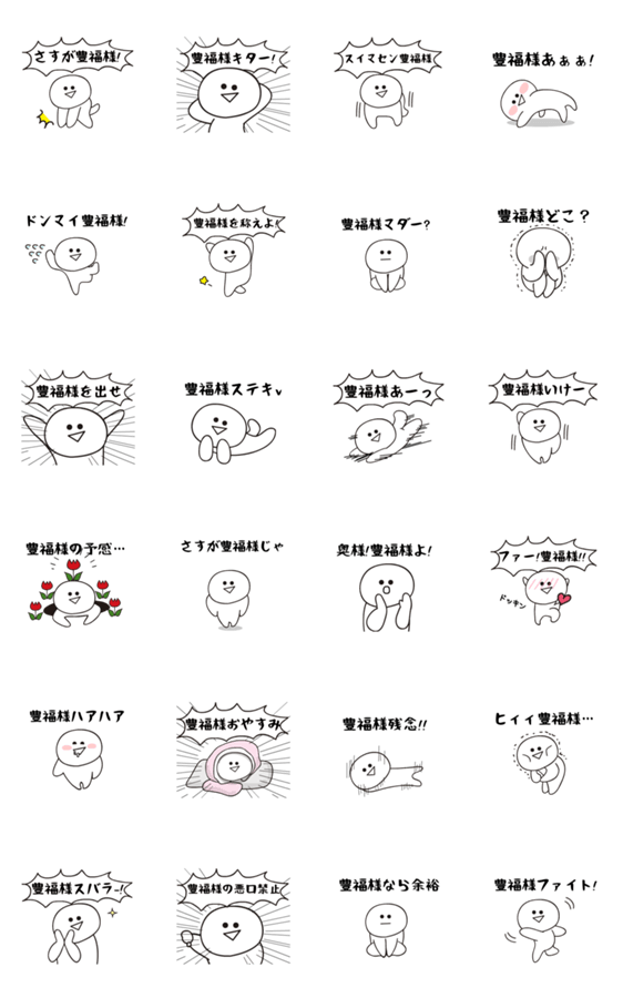 豊福様を尊ぶための名前スタンプです。褒めて、励まして、応援します!