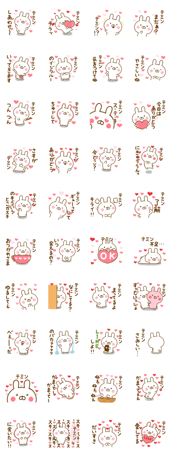 ゆる~く、可愛いうさぎ(うさひな)の好きすぎる♥テミン♥に送るラブラブ名前スタンプです♥