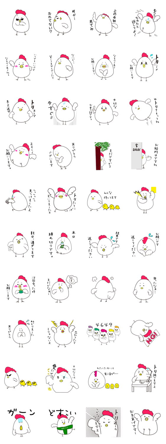 | スタンプ説明 | お金やモノを貸したのになかなか返してくれない人へあなたに代わってユーモラスにトリタテてくれるスタンプですよ。無事に帰ってきますよ〜に。 |