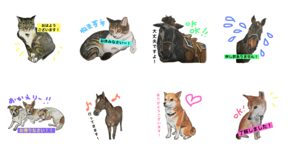 | スタンプ説明 | Thank you!-Have a good day!-Good night!-OK!-Hello!-All right-I'm sorry-I'm home! |