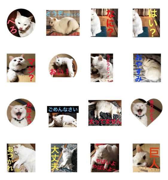 白ネコのあいうえお・・・ってるスタンプ