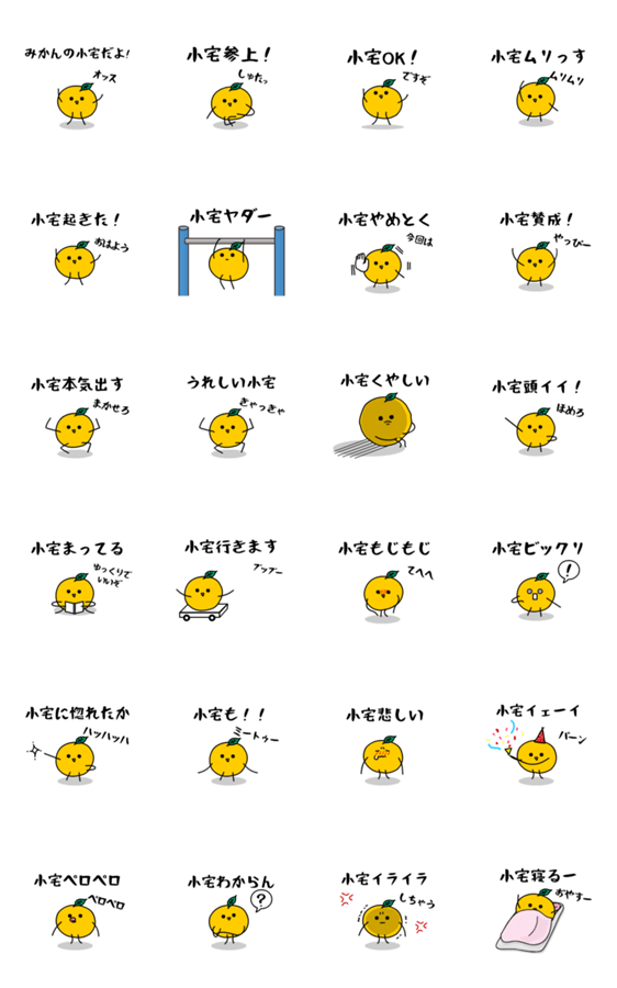 かわいい蜜柑になったよ。手足がついて,キモ動くスタンプです。
