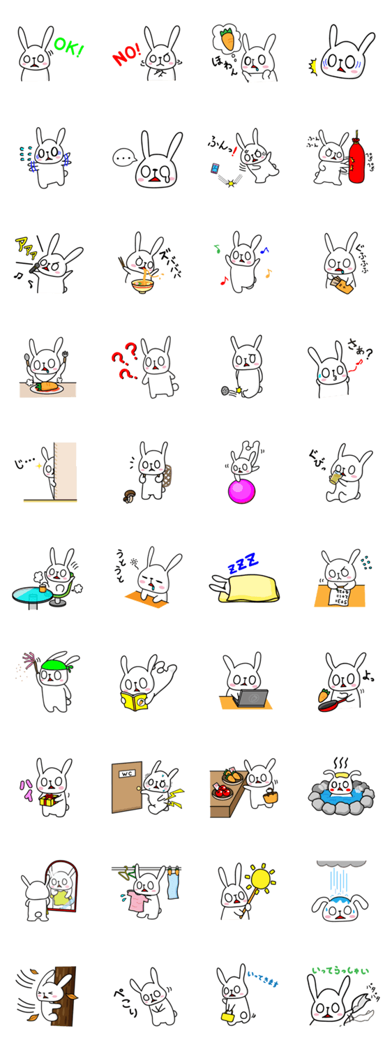 いつものんびり、けれど時に感情的に。そんなうさこの日常スタンプです。何ともゆるーい顔に癒されるかも?