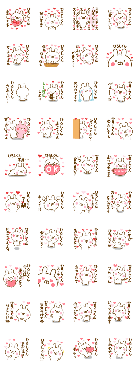 ゆる~く、可愛いうさぎ(うさひな)の好きすぎる♥ひろしくん♥に送るラブラブ名前スタンプです♥