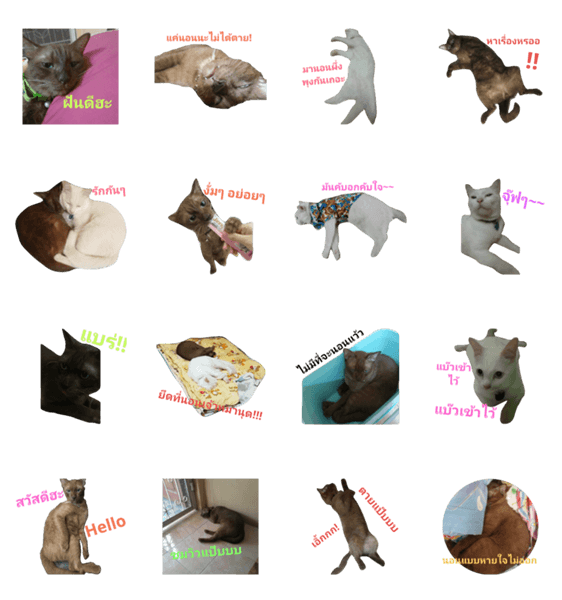 | スタンプ説明 | Hello, we use a lot of stickers (Toffee The cat is brown. Kati is a white cat) |
