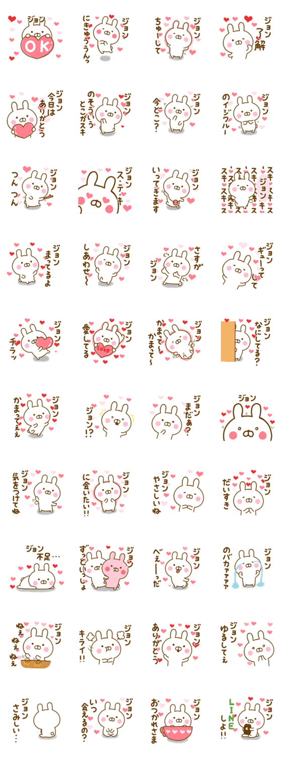 ゆる~く、可愛いうさぎ(うさひな)の好きすぎる♥ジョン♥に送るラブラブ名前スタンプです♥