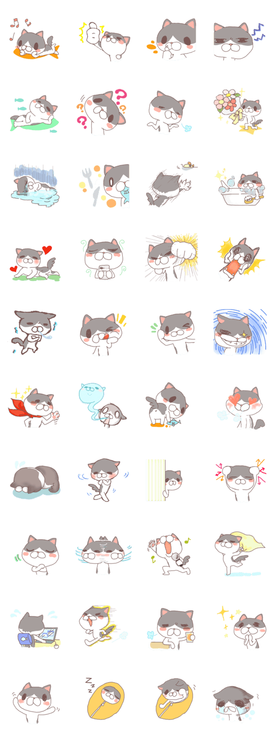 白黒猫プーすけのスタンプです。猫だけど、本人はきっと自分を猫だと思っていないでしょう。猫好きな人もそうじゃない人も使っていただけると嬉しいです。
