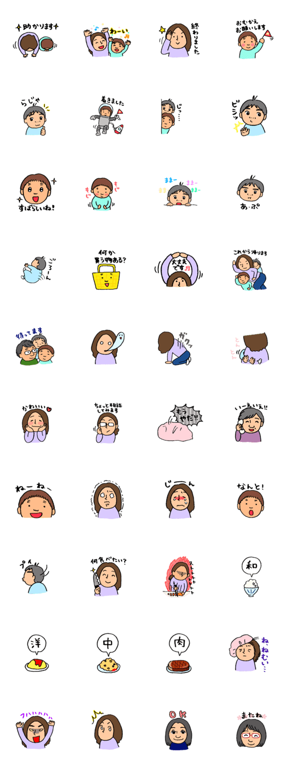 まめとぷちをはじめ、えどむらさき家族のスタンプ2です。家族や友達で使いやすいものを作りました。