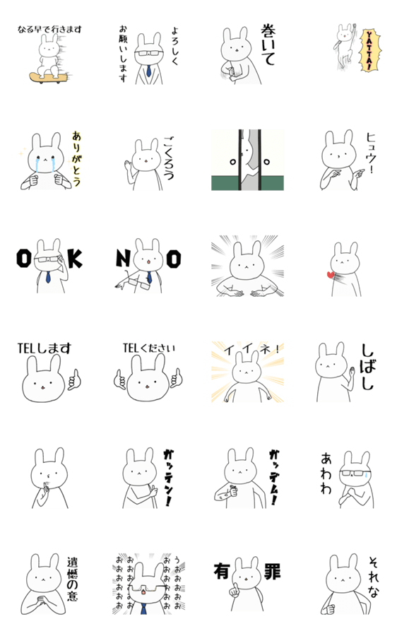 ★動く★シンプルな顔のウサギ -LINEスタンプマニア