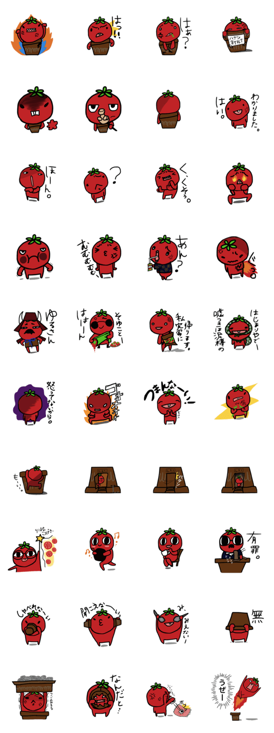 手書きの怒るトマトスタンプ。すねるとまともあります。あなたの怒りをとまとで伝えましょう