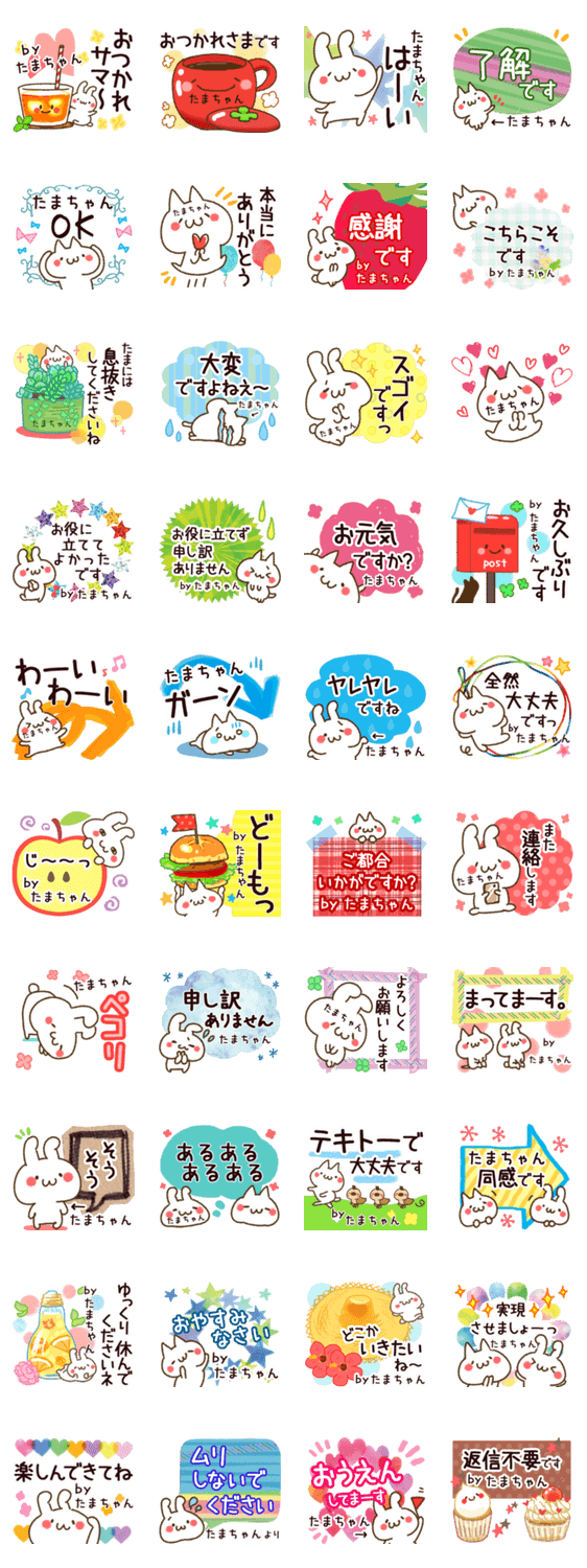 | スタンプ説明 | たまちゃん/が使える/名前/あだ名/名字スタンプ/タマ/たまこ/たまみ/たまえ/たまか/たまの/たまな/たまよ/みたま/おたま/たまき/たまを/玉森/玉井/玉岡/玉山/玉澤/珠/専用 |